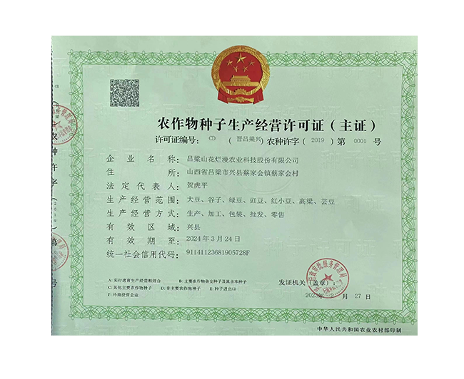 呂梁山花爛漫農(nóng)業(yè)科技股份有限公司是山西省農(nóng)業(yè)產(chǎn)業(yè)化重點(diǎn)龍頭企業(yè),公司成立于2008年,法人代表賀虎平,注冊資本1000 萬元,現(xiàn)有員工 30 人。公司位于興縣蔡家會鎮(zhèn)蔡家會村建有占地面積1萬多平方米生產(chǎn)區(qū)和辦公區(qū),年總加工雜糧能力達(dá)到4萬噸。擁有一套日精加工50噸谷子成套設(shè)備生產(chǎn)流水線;擁有一套日精加工30噸豆面、蕎面設(shè)備流水生產(chǎn)線;擁有一套日精加工50噸紅小豆、豇豆、綠豆、腎型黃豆、紅蕓豆設(shè)備流水生產(chǎn)線,2020年引進(jìn)省農(nóng)科院農(nóng)產(chǎn)品加工研究所谷子精深加工技術(shù),目前設(shè)計年產(chǎn)300噸的小米油加工一條龍生產(chǎn)線已經(jīng)安裝調(diào)試完畢,產(chǎn)品經(jīng)化驗(yàn)達(dá)到國家一級油標(biāo)準(zhǔn),并獲得兩項專利證書。主要產(chǎn)品有“山花爛漫”牌有機(jī)小米、綠色小米各種精美包裝系列;蔡家會村豇豆面、豌豆面等雜糧面、手搟豆面系列、以及有機(jī)精品雜糧系列。擁有“山花爛漫”山西省著名商標(biāo)。公司采用線下和線上銷售相結(jié)合的營銷模式。